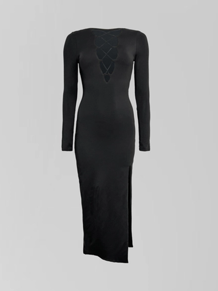 Элегантную ноту вносит деликатная шнуровка на спине, позволяющая идеально подогнать платье по фигуре. Динамики строгому образу добавляет разрез по ноге — деталь, подчеркивающая продуманность дизайна. Магазин «NADYA» гарантирует, что каждая строчка и шов в этом платье выполнены с вниманием к долговечности.