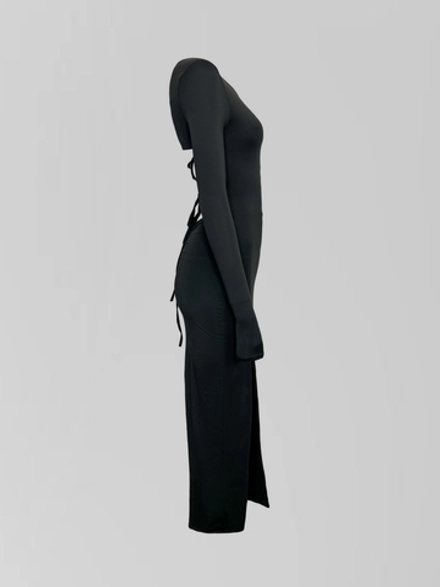 Платье 711 создано для динамичной жизни, легко трансформируясь из повседневного варианта в вечерний образ. Его удлиненный силуэт с длинным рукавом и выразительной шнуровкой на груди придает образу особую выразительность, а лаконичный разрез добавляет современное звучание. При создании модели был выбран полиэстер высокой плотности, который отличается устойчивостью к деформации и способностью долго сохранять безупречный вид даже при активной носке. Магазин «NADYA» гарантирует, что после множества стирок ткань не потеряет насыщенность цвета и форму, что говорит о внимательном контроле качества на всех этапах производства.