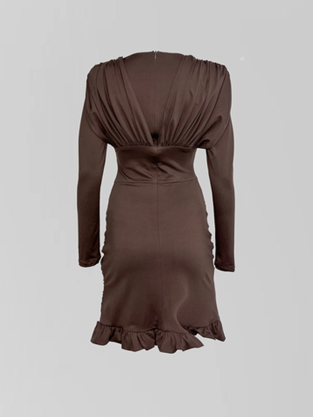 Платье кроя короткой длины исполнено из полиэстера, чьи свойства высокого качества обеспечивают изделию струящуюся пластику и комфорт в носке на протяжении всего демисезонного дня. Задняя застежка-молния не только функциональна, но и аккуратна, подчеркивая чистоту линий. Длинный рукав придает силуэту собранность и завершенность, позволяя модели оставаться элегантной даже в прохладную погоду.