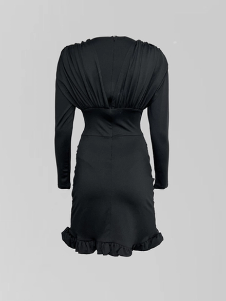 Платье кроя короткой длины исполнено из полиэстера, чьи свойства высокого качества обеспечивают изделию струящуюся пластику и комфорт в носке на протяжении всего демисезонного дня. Задняя застежка-молния не только функциональна, но и аккуратна, подчеркивая чистоту линий. Длинный рукав придает силуэту собранность и завершенность, позволяя модели оставаться элегантной даже в прохладную погоду.