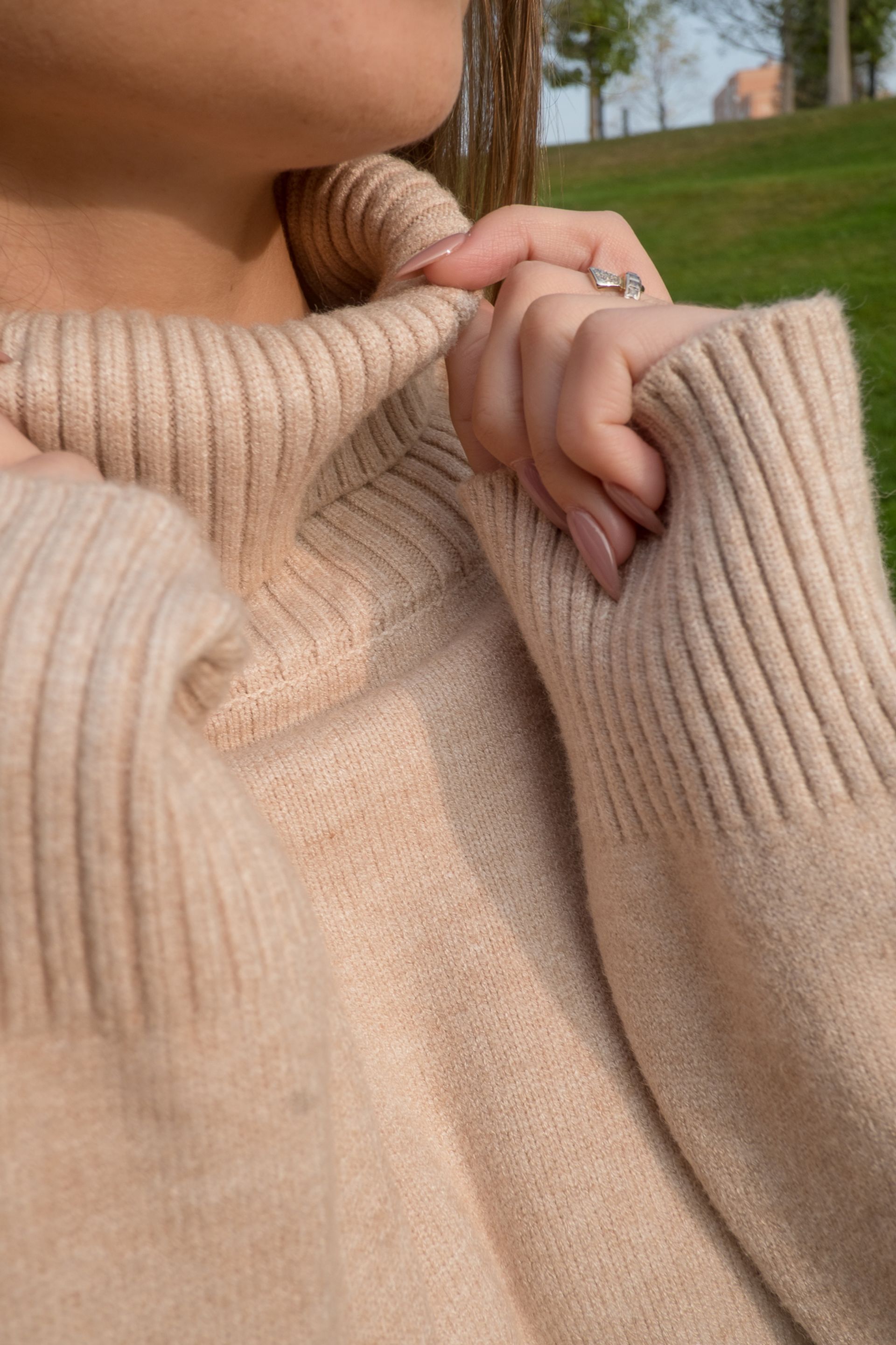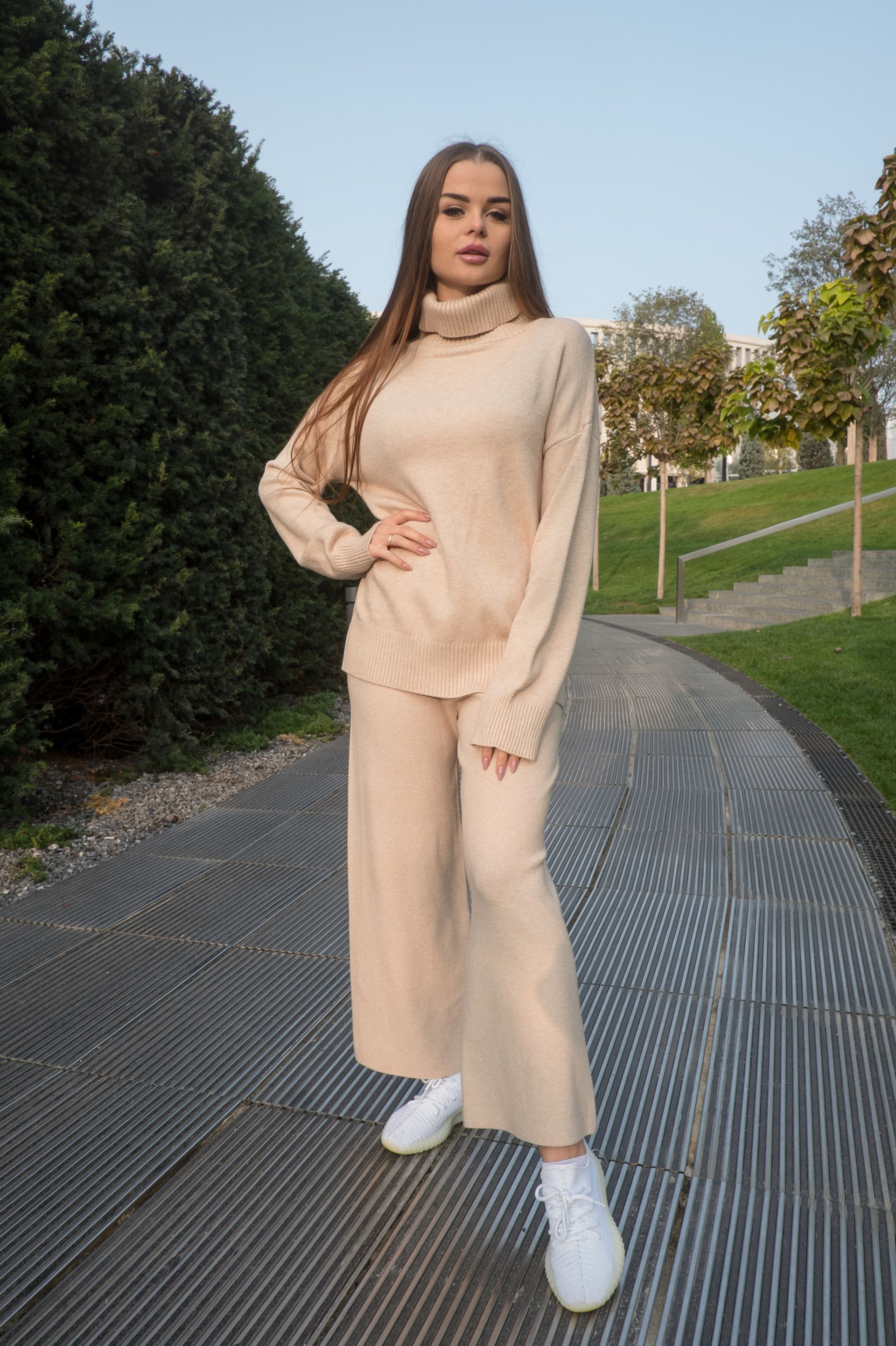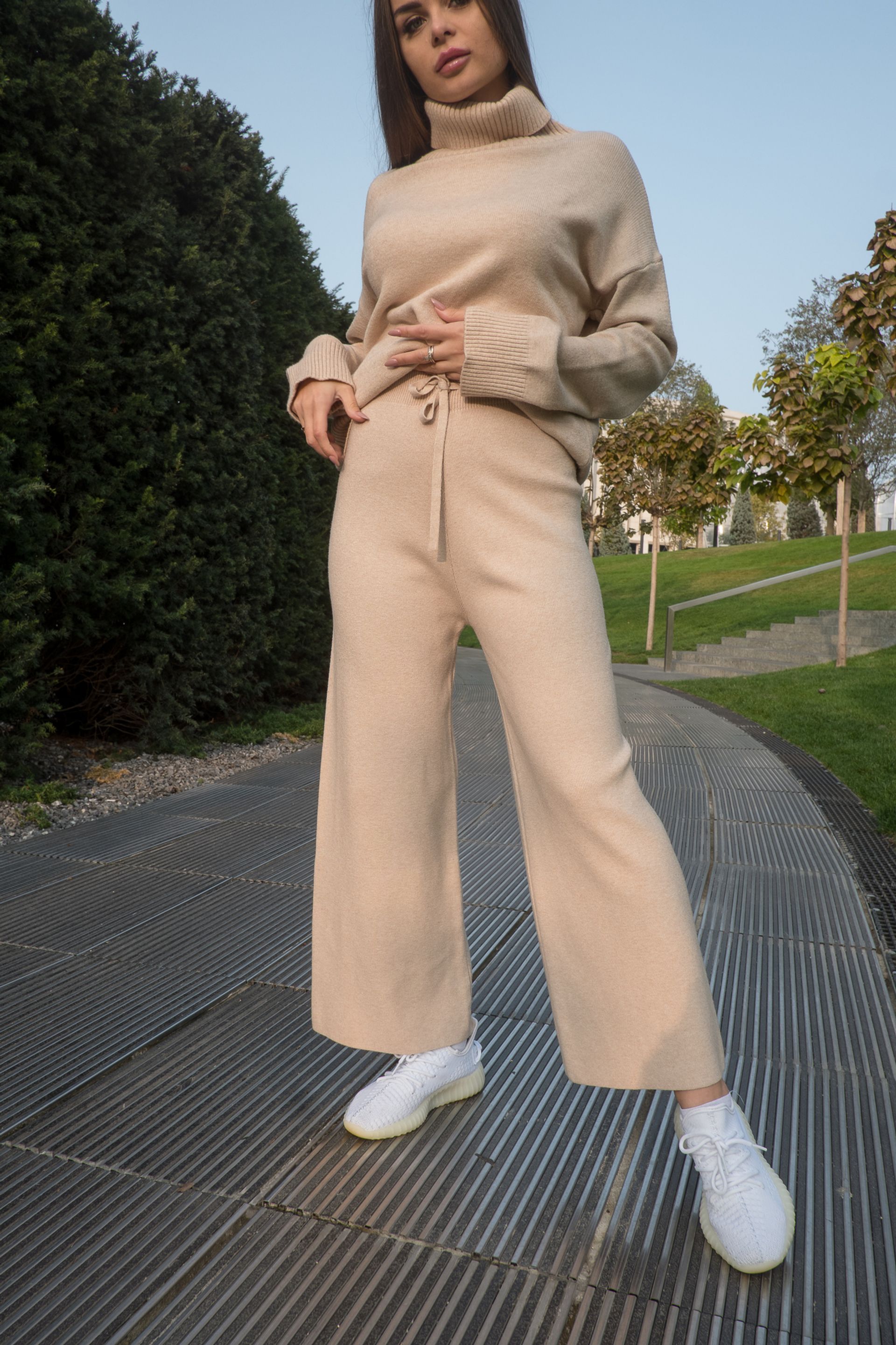 Женский спортивный костюм бежевого цвета из трикотажа, с высоким горлом и размера оверсайз
