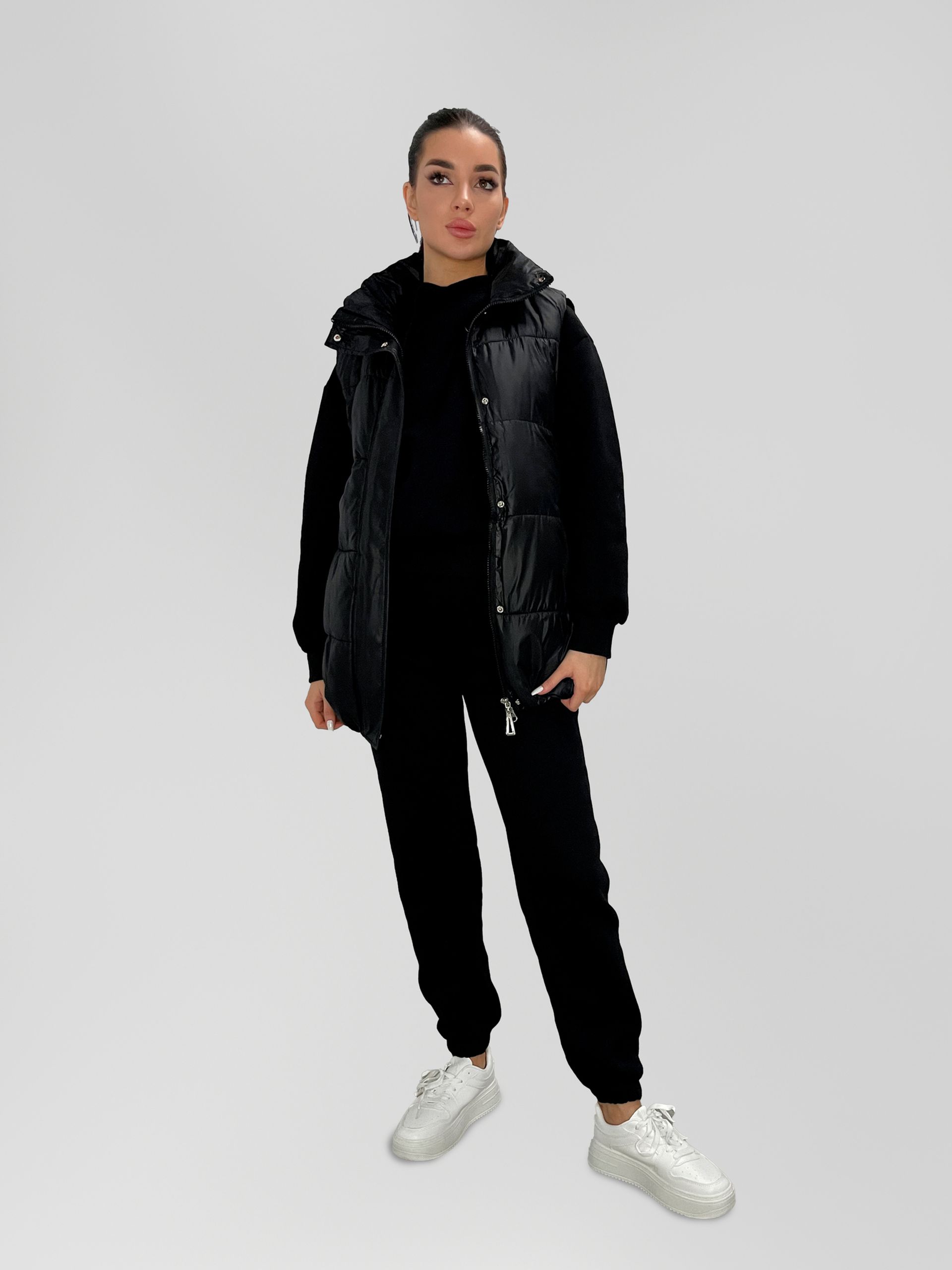 Женский спортивный костюм-тройка Haiziyuan 6002 из плащевки, полиэстера и флиса, однотонный, из жилетки, тостовки с капюшоном и штанов с резинкой на талии и внизу штанин