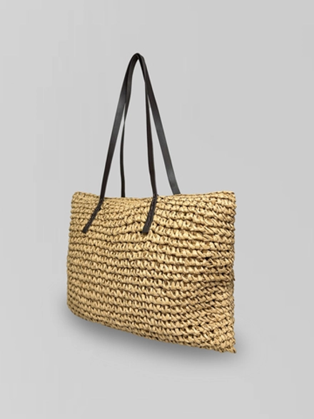 Дизайн модели лаконичен: открытый прямоугольный силуэт с соломенным акцентом придает образу легкость, не лишая его элегантности. Внутри — два удобных кармана: один для быстрого доступа к мелочам, второй — на молнии, чтобы ценные вещи оставались в безопасности. В комплекте — стильный кошелек и регулируемый ремешок, позволяющий носить сумку как на плече, так и в руках.
