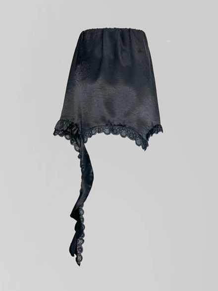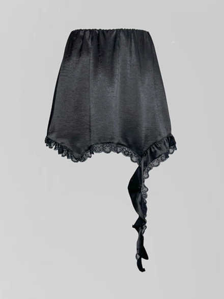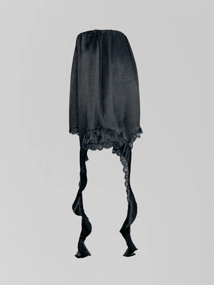 При создании этой модели был выбран полиэстер, чьи практичные свойства удачно сочетаются с визуальной утонченностью. Ткань обладает благородным атласным блеском, который мягко играет при свете, подчеркивая динамику движений. Элегантность силуэта гармонично дополняется деликатной отделкой: кружевные элементы и рюши расположены с художественным тактом, создавая ощущение продуманной легкости, а не просто декора.