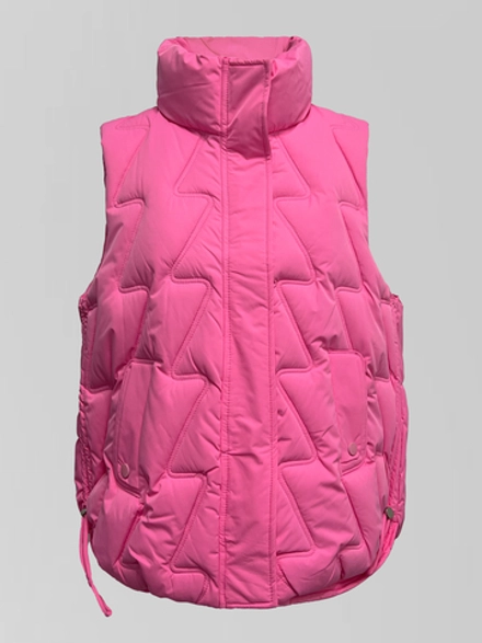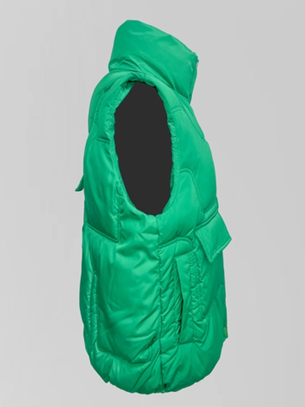 Дизайн жилетки продуман до мелочей. Отсутствие капюшона придаёт модели строгость и универсальность, а разнообразие карманов — как открытых, так и закрытых — позволяет удобно разместить необходимые мелочи. Застёжка на молнии дополнена кнопками, что обеспечивает дополнительную защиту от ветра и холода.