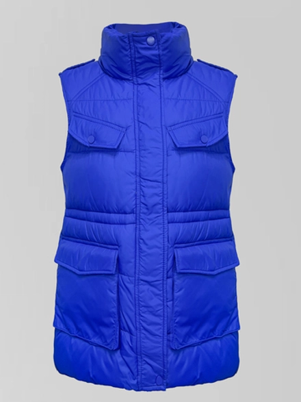 Два накладных кармана — это не только стильный акцент, но и практичное решение для хранения мелочей. Отсутствие капюшона делает жилетку универсальной и подходящей как для городских прогулок, так и для активного отдыха.